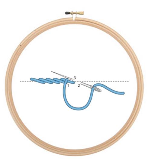 Trucos: Si vas a contornear líneas curvas muy cerradas con el punto tallo, es aconsejable que hagas las puntadas más pequeñas para mantener una línea suave.