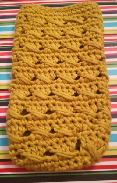 Tejí esta funda para móvil, con este punto trenza, tejido en redondo, para no tener costuras