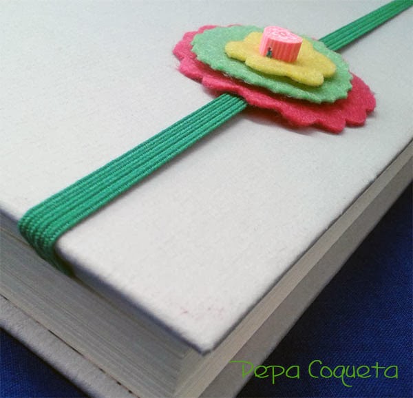 Ya os he enseñado de muchas clases, (los de las comuniones, unos de moda estrechos con lacitos, de esquina) pero ésta me parece muy original. Basándome en las gomas que llevan algunos cuadernos y agendas, pensé... y si se aprovecha para marcar la hoja??? Además tiene un aire coquetón que me encanta ;)