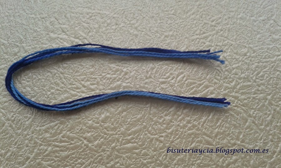 Una vez hecho esto, debéis cortar unos 5 hilos de 10cm de largo.