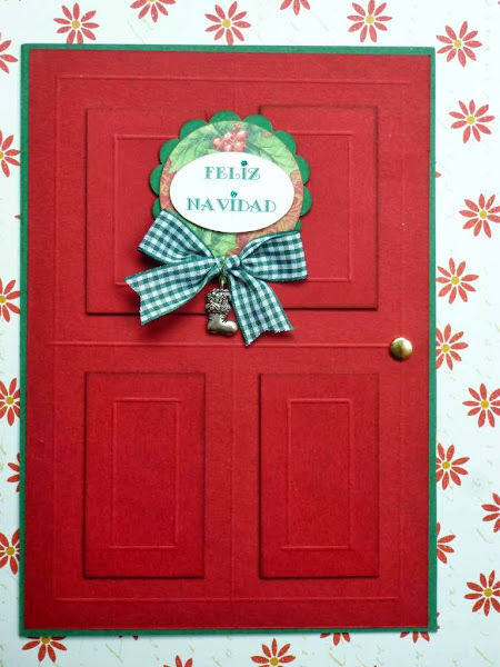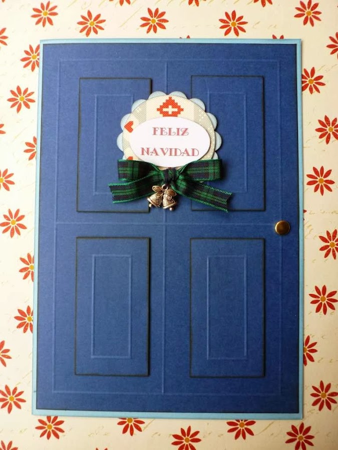 Hace tiempo ví algunas tarjetas que imitaban una puerta adornada, y me encantaron. Así que yo he hecho mis versiones en varios colores. No sabría deciros cuál me gusta más: