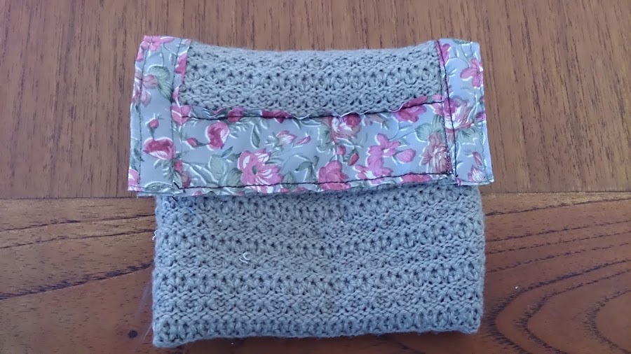 No se si recordareis mi post de los cojines hechos apartir de unos vestidos de punto http://positivacreativa.blogspot.com.es/2014/02/cojines-reciclados.html, pues aun sobró algún retalillo y hice este bolsito para guardarme los medicamentos en el bolso.