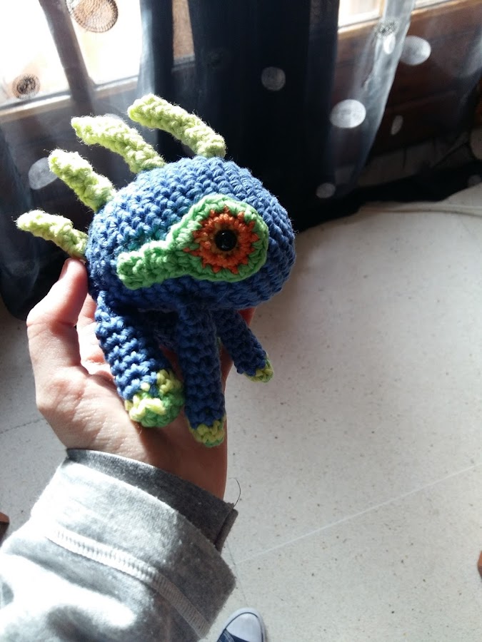 Un murlock amigurumi del juego World of Warcraft, fue un regalo para mi chico en navidades.