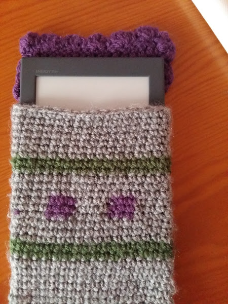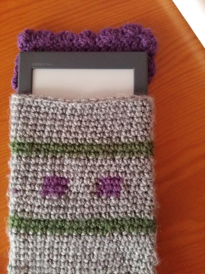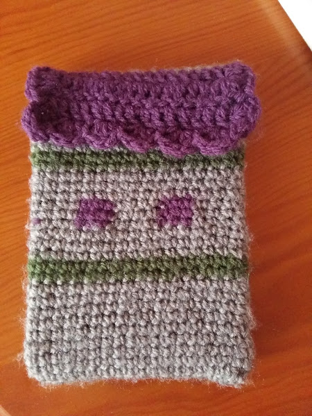 La hice antes de que me llegara el ebook, miré su dimensión en internet y la verdad que pensaba que o que me iba a quedar grande o que me quedaría pequeña. La hice con lana acrílica, añadiendo formas.