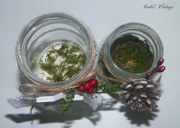He ido haciendo composiciones diferentes en cada frasco, todas muy naturales y nada recargadas. Os voy enseñando.