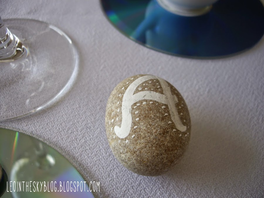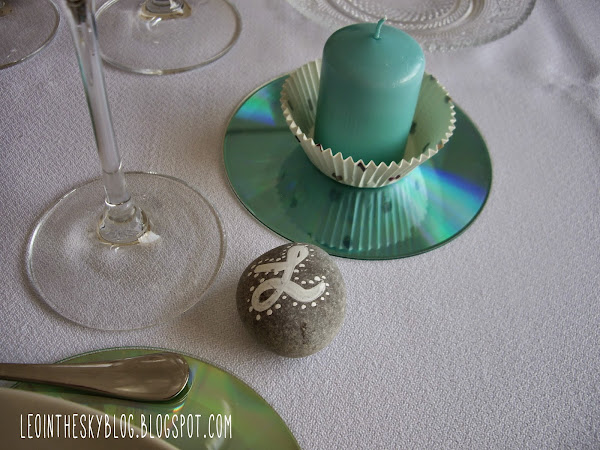 No olvides marcar el sitio de cada comensal. Sólo hay que escribir el nombre o en este caso la inicial de la persona con un rotulador de tiza líquida.