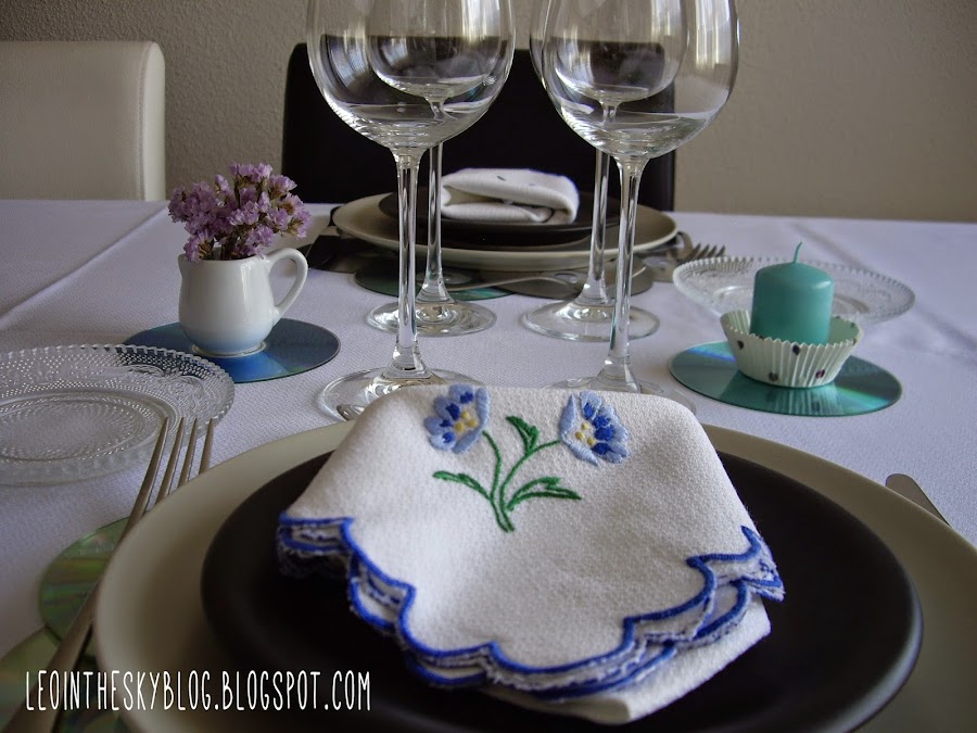 Pon un platito para el pan, las copas, los platos, los cubiertos... y ya sólo te hace falta una buena comida/cena y por supuesto buena compañía :)