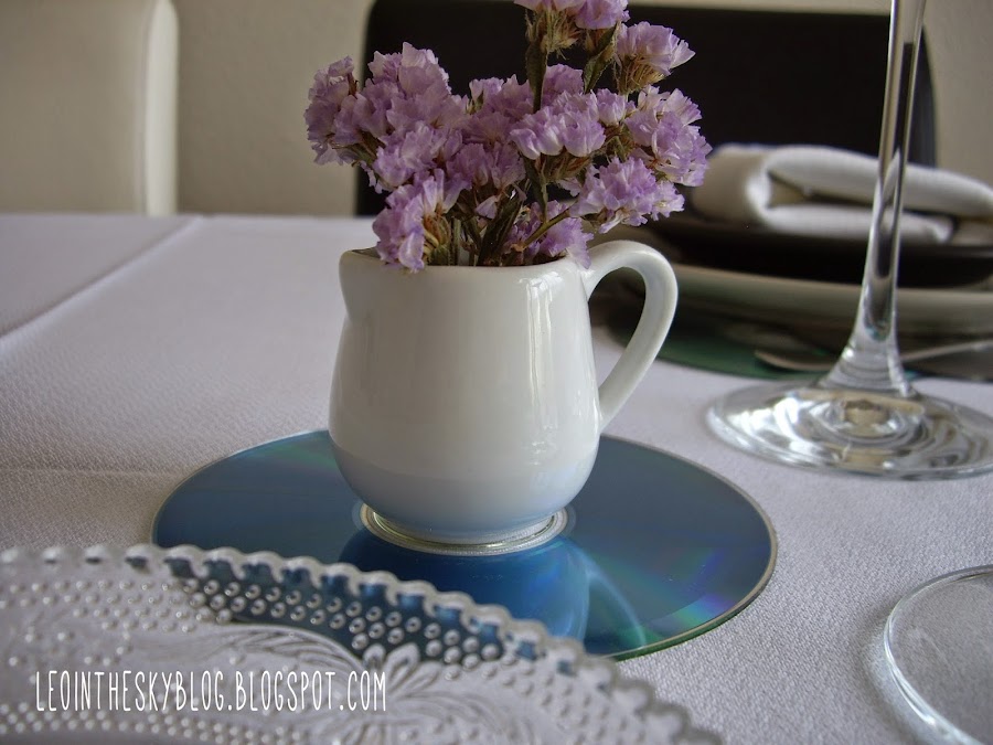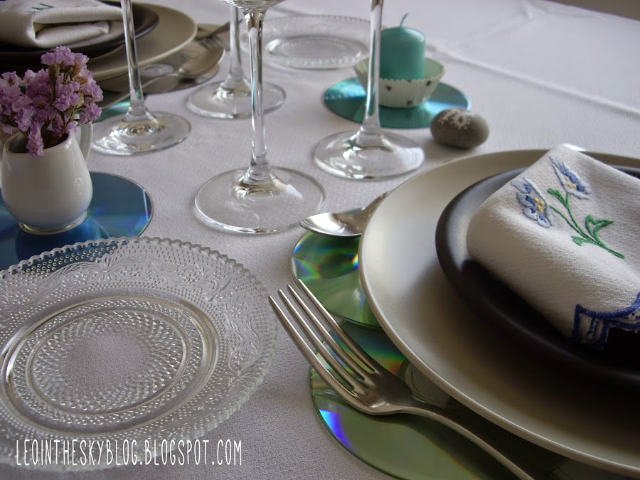 Después colócalos en la mesa formando una especie de flor y úsalos como bajo plato para adornar la mesa. Si quieres puedes unirlos con cinta adhesiva de doble cara, pero no es necesario, salvo que tengas niños o invitados de esos que lo andan toqueteando todo...