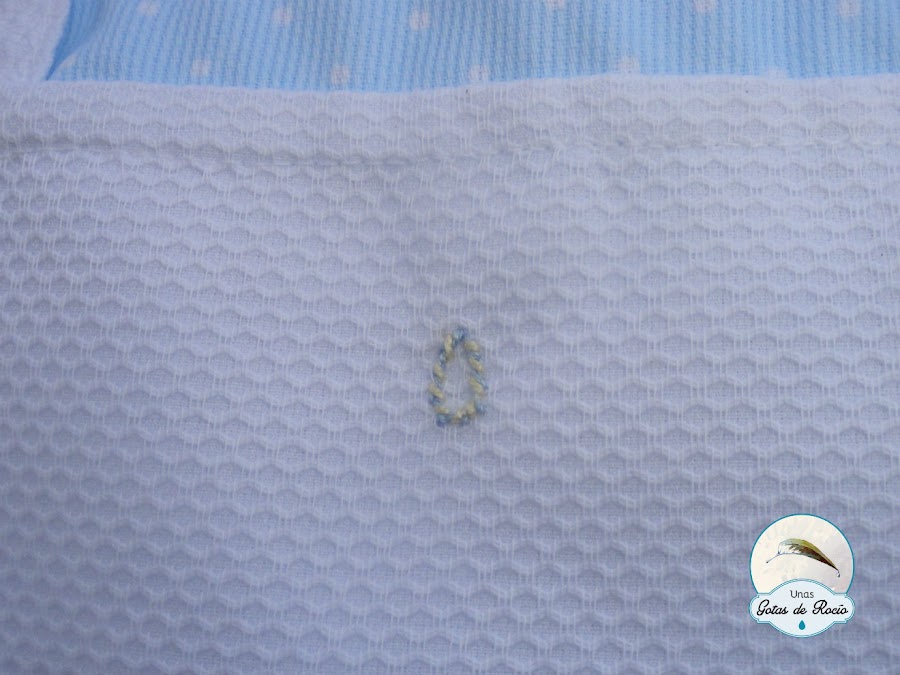 Otro articulo que he vuelto a hacer es la taleguilla que bien puede servir para la guardería o para cualquier otro fin, pues con un bebé en casa siempre hay cosas suyas que llevar y si es en una bolsa mona con su nombre, pues mejor que mejor. En esta ocasión va acompañada de un neceser a juego.