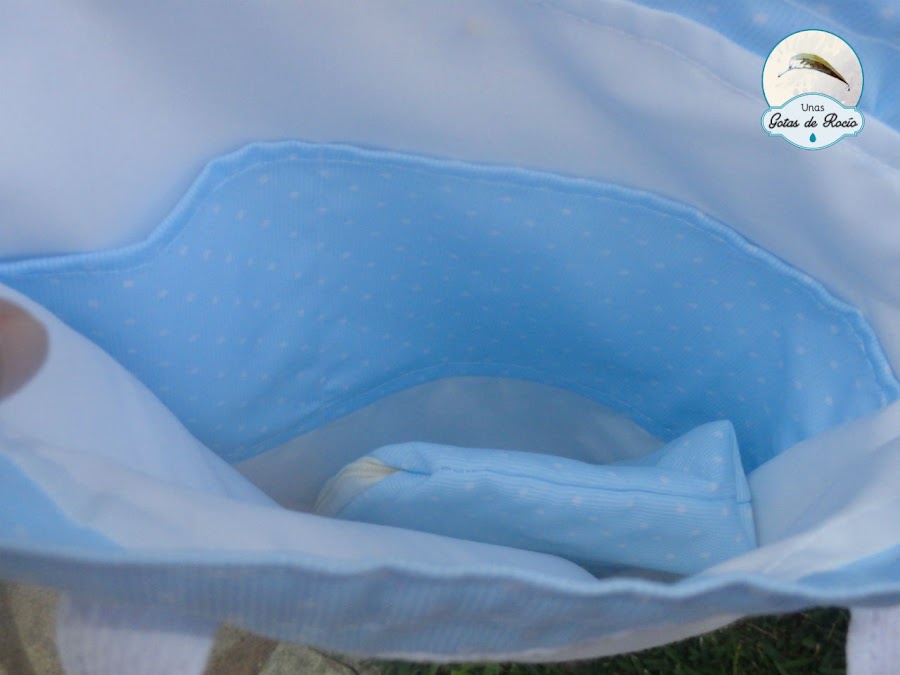 Aquí tenemos el neceser, forrado en blanco y con interior de guata 100% algodón.