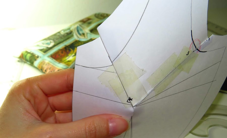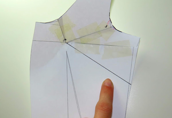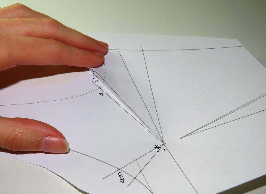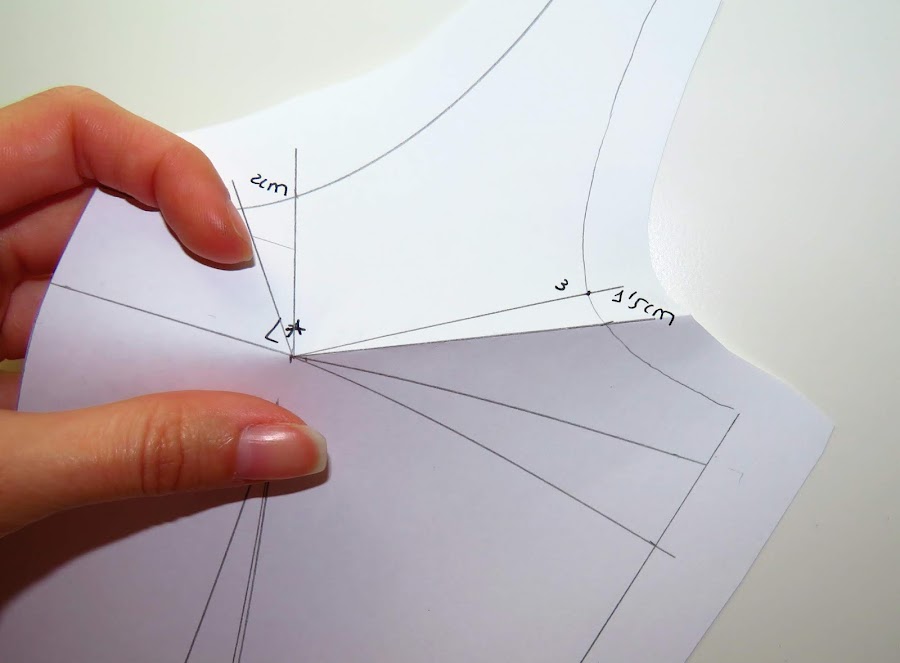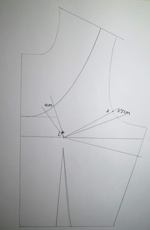 Desde el punto 3 hacia abajo, marcamos el ancho de esta pinza correctiva de sisa. Normalmente se le da una medida de 1 cm-2 cm. Yo suelo usar 1,5 cm.