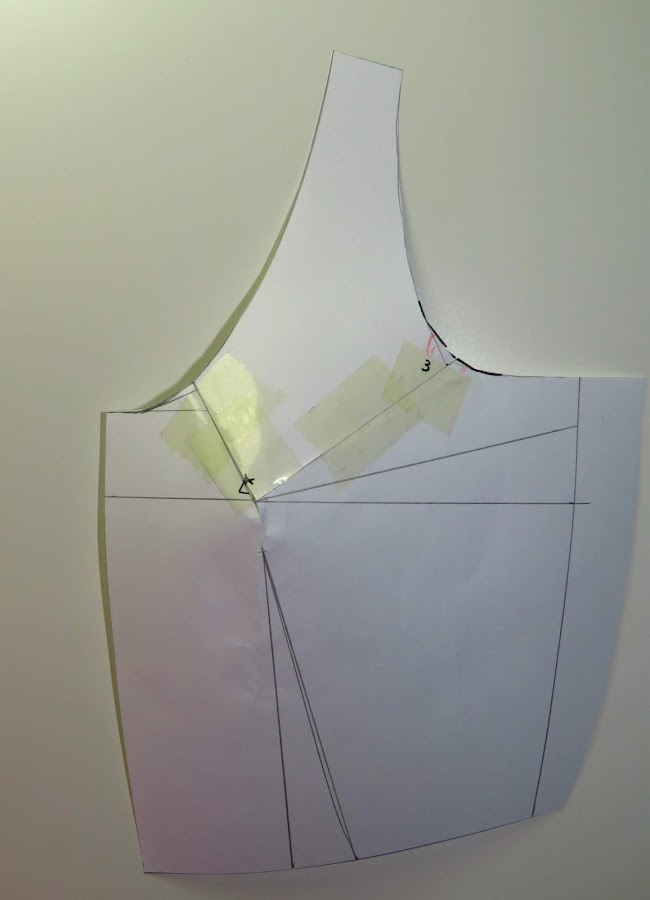 Es importante que sepas que éstas pinzas sólo se hacen cuando el escote no va a llevar cuello, o la prenda no lleva manga, es decir, si la prenda va a la sisa hay que corregir, en caso de llevar manga no.
