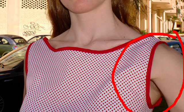 Por ejemplo, imagina que el escote de la siguiente foto no tuviera pinza correctiva...