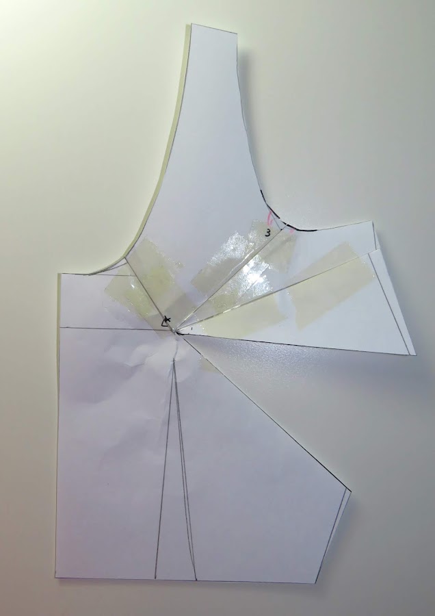 Abrimos, y todo el volumen que creamos con las pinzas, se traslada a esta nueva pinza y, además, aplanamos nuestro patrón