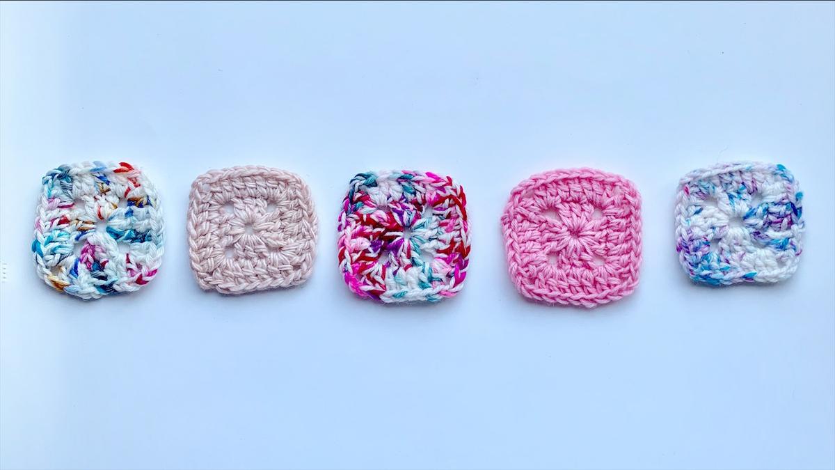 A esta altura, estaba entusiasmada haciendo combinaciones, así que de paso te doy el patrón de los cuadrados, que son especiales para hacer cuando te quedan restos de lana en poca cantidad.
