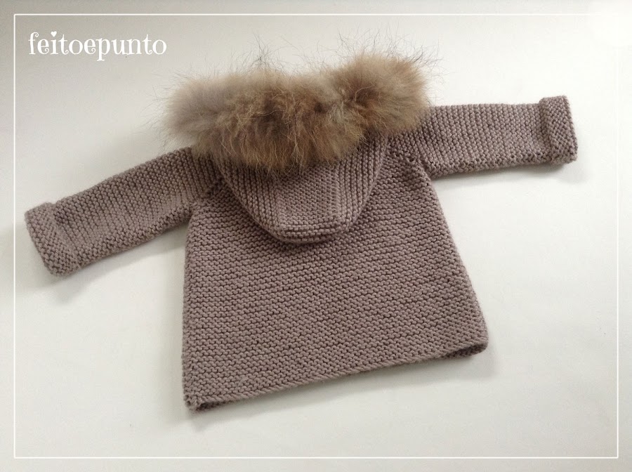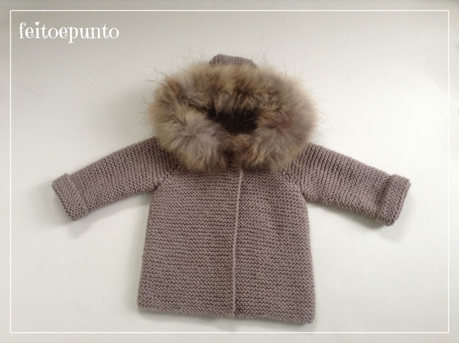 Este tipo de abrigos se llevan un montón! Lana gorda y calentita, punto bobo, capucha, y cuello de pelo! Parece una muñeca con él!
