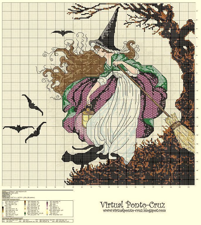 Pues sí, se acerca la fecha de fantasmas, brujas, vampiros y calabazas, dulce como los caramelos que les damos a los niños que nos tocan la puerta con su "truco o trato", importado de otras tierras, pero que al fin y al cabo, les divierte. Qué tal si bordamos ésta bruja tan bonita?