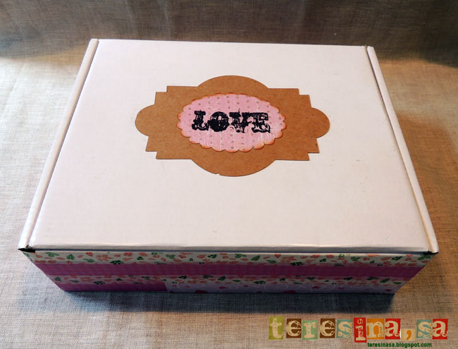 Para completar el regalo, una caja reciclada (creo que era del nuevo router que movistar me cambio hace poco), decorada con washi-tape y detalles de scrap.