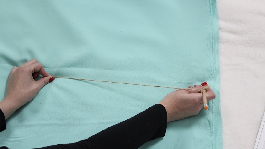 1 PASO: Cortar las telas en círculos, colocando la tela doble marcaremos las circunferencias variando el radio: Radio 35 cm, Radio 30 cm, Radio 25 cm, Radio 20 cm, Radio 15 cm. La circunferencia del interior sera igual para todas Radio 12 cm.