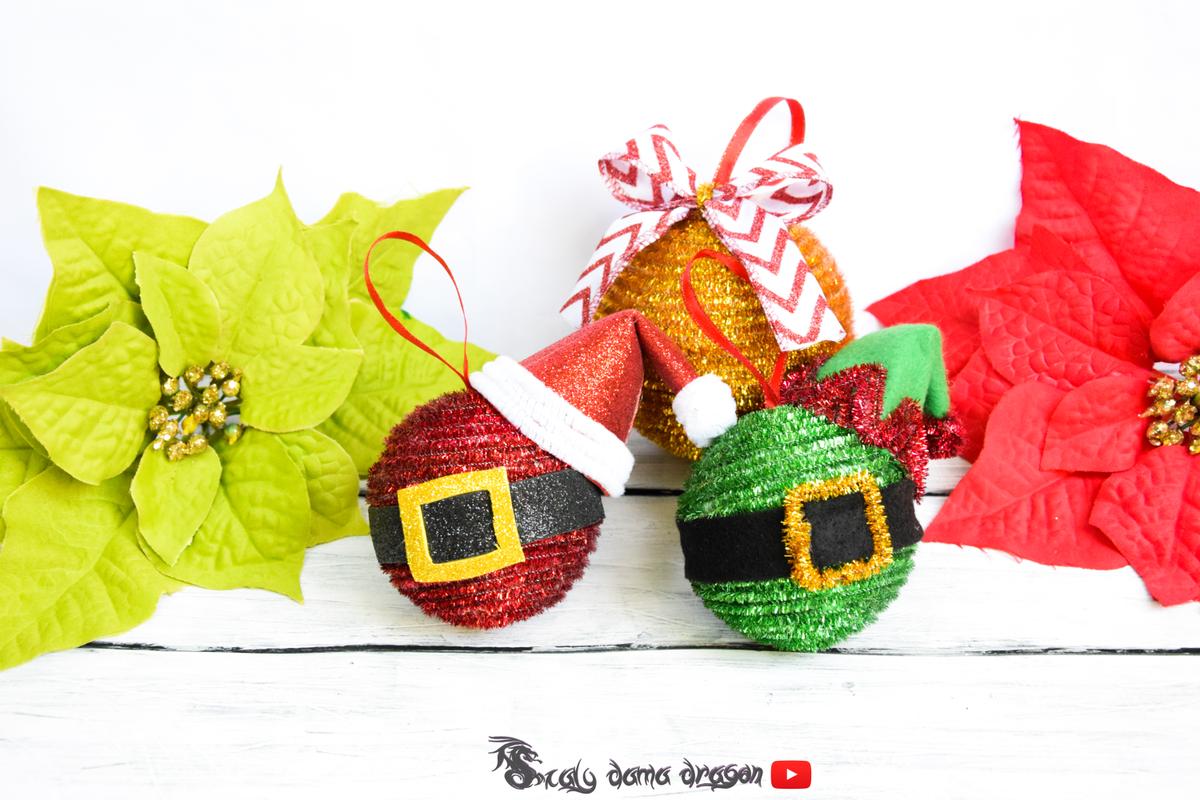 En el vídeo de hoy les mostrare como realice estas 3 lindas esferas navideñas inspiradas en santa Claus, un duende y la tradicional esfera dorada ideal para decorar tu arbolito o pinito de navidad.