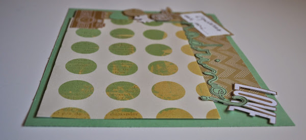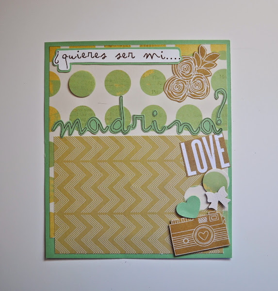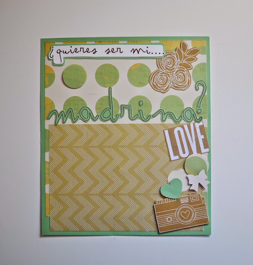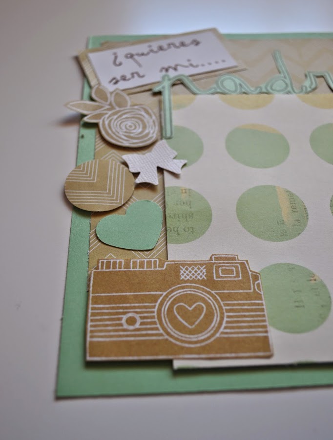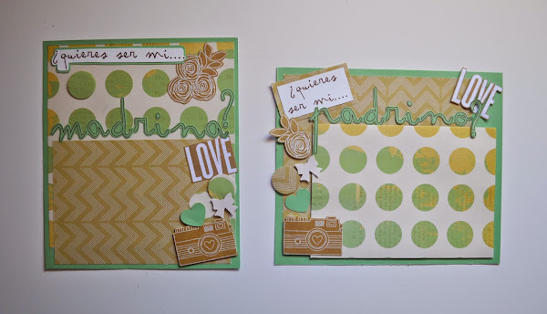 Son dos tarjetas van a conjunto y las he decorado en color verde y beige, con letras muy divertidas, unas formas de papel en el lateral y un hueco para poner una foto.