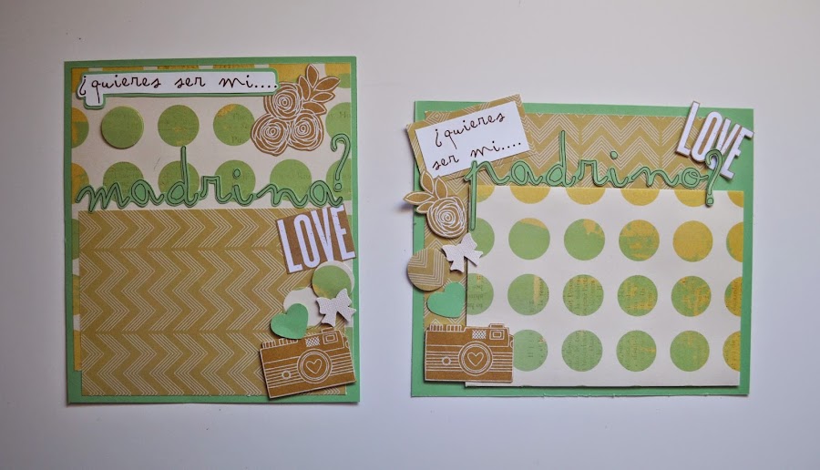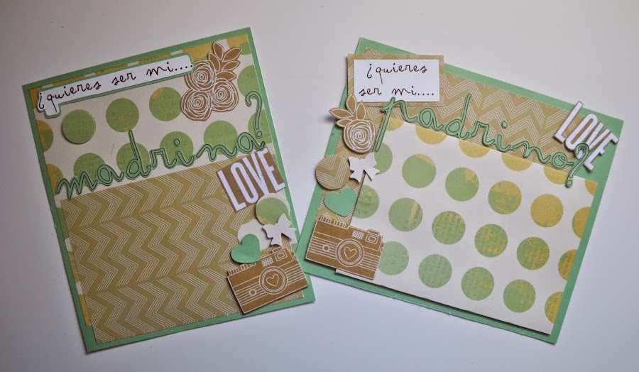 Aquí tenéis unas bonitas tarjetas que hice para dar la buenísima noticia a Fernando y a Pili de que iban a ser el padrino y la madrina de Pablo, el nuevo miembro de la casa.