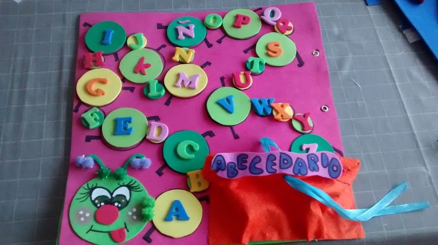 Para que se más dinámico hemos creado un cienpies de manera que los niños aprenden colocación, orden y por supuesto el abecedario.