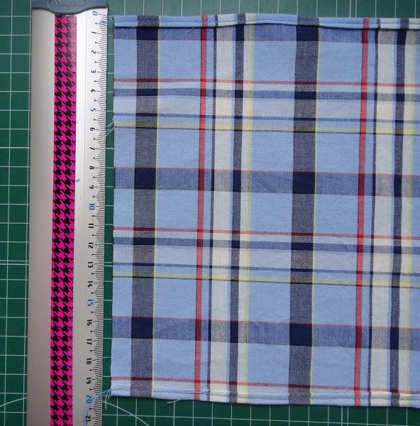 Hacemos dobladillo de 1 cm arriba y abajo de la tela, de forma que nos quede una pieza de 20x22 cm