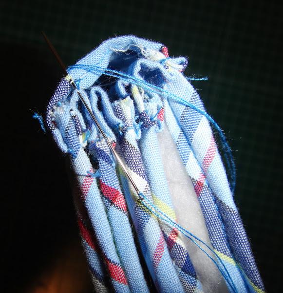 Sacamos las dos tiras de tela hacia afuera y volvemos a coser para reforzar y sujetar.