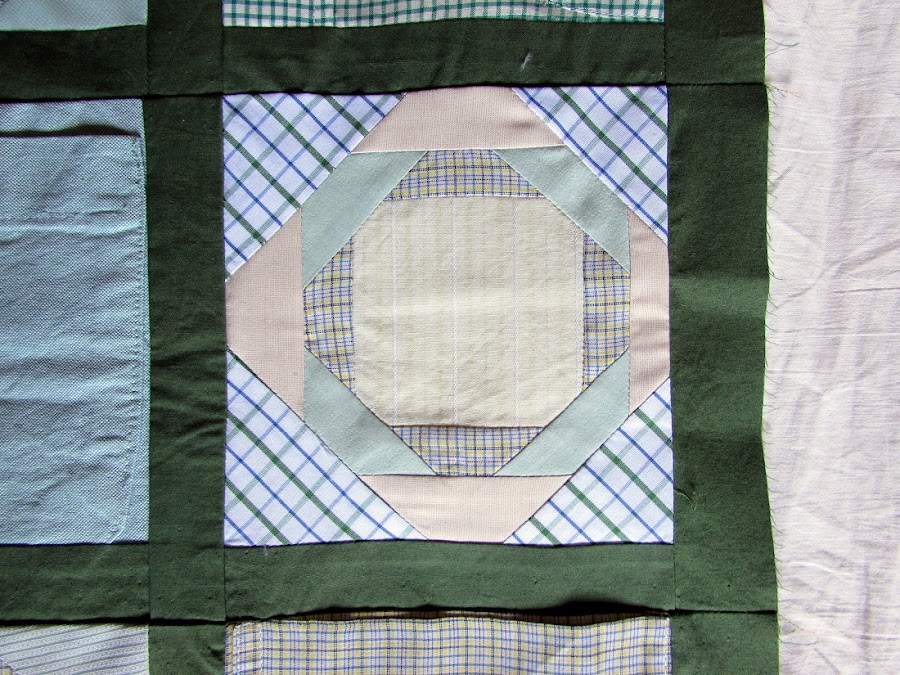 En estas fotos estaba yo con el fotógrafo y se me olvidó que sacara detalle de algún bloque, así que os tengo que enseñar la única foto que tengo de "antes" de unir y acolchar.