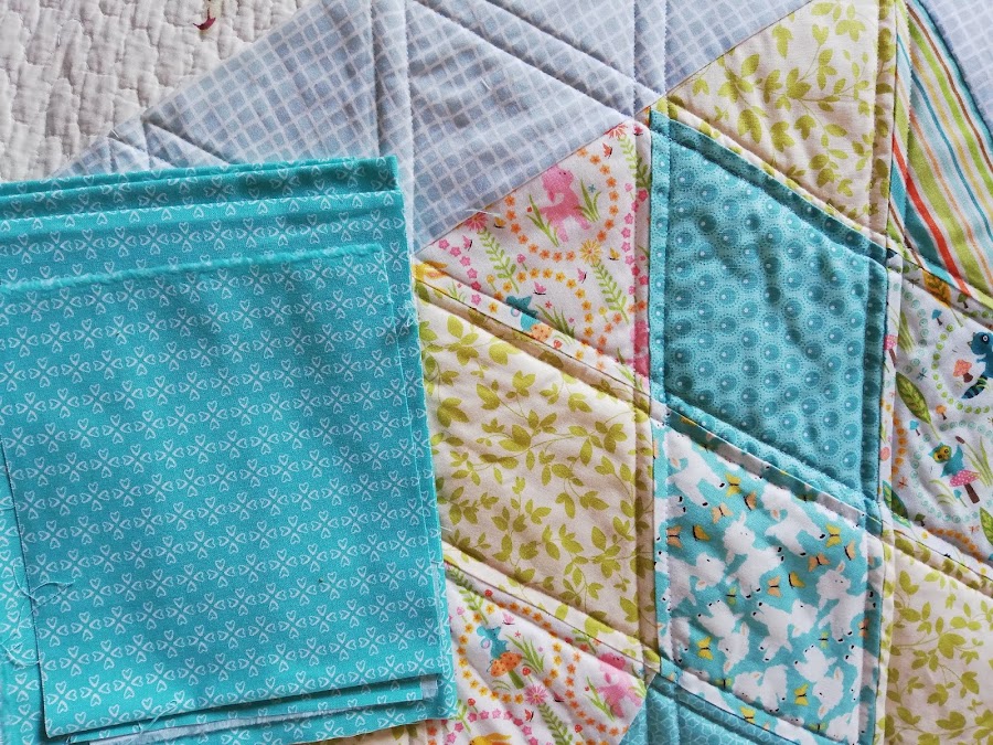 Tanto la trasera como la tela del borde es de una funda de edredón de Ikea de la zona infantil. El bies es de la colección Mama´s Cottage de April Rosenthal.