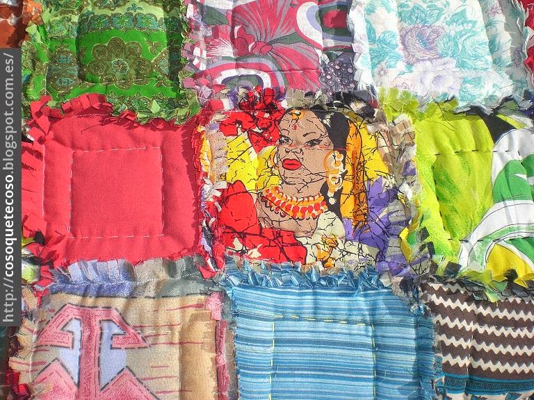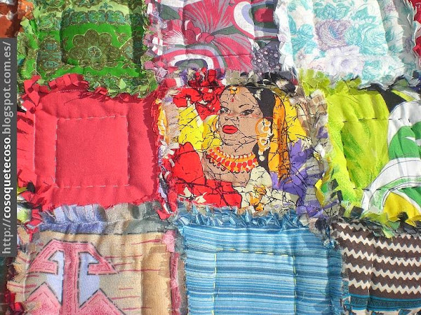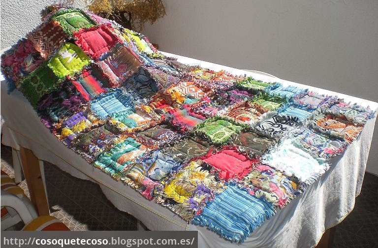 Igual que hice con la colcha de hexágonos, en este caso, son todo telas recicladas de vestidos que me regaló Carmen, y de camisas y otros restos de mi propia cosecha.