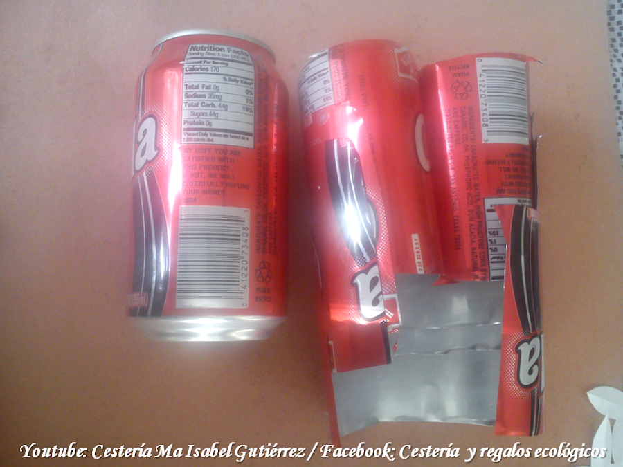 Cortamos el fondo y la parte de arriba de las latas, reservar dos anillas de latas...