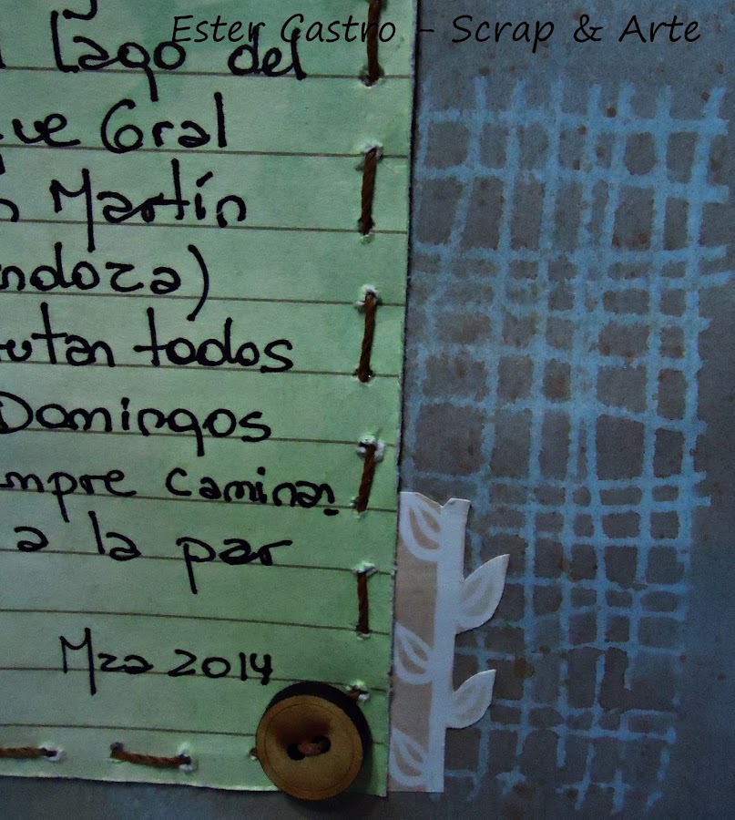 Y detalles de madera Autohadesivas: Indicador Geográfico (pintado con acrílico verde) y Botón de madera.