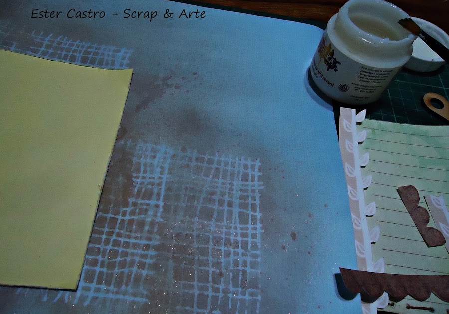 Una vez preparada la base, los Mat (alfombritas), los detallitos de las tiritas de láminas y la foto las pegué con Adhesivo Universal Ecológico Eureka formando el diseño del LO