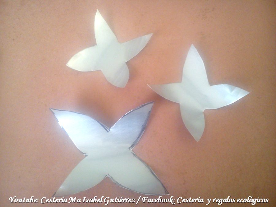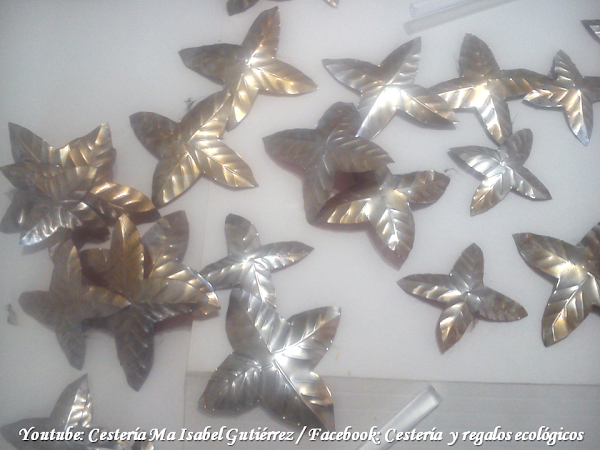 En base a estos moldes, dibujamos y cortamos sobre el aluminio, tomando en cuenta que cada flor lleva dos piezas grandes y una pequeña...