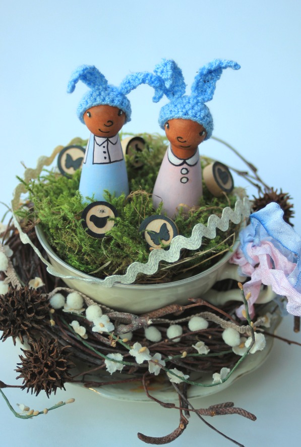 Esto me pasa muchas veces como con estas figuritas en madera que las vi por la red y una noche desocupada las pedí! y ya con ellas en la mano tenía tantas ideas que no concretaba ninguna, pero como llegaba la pascua...