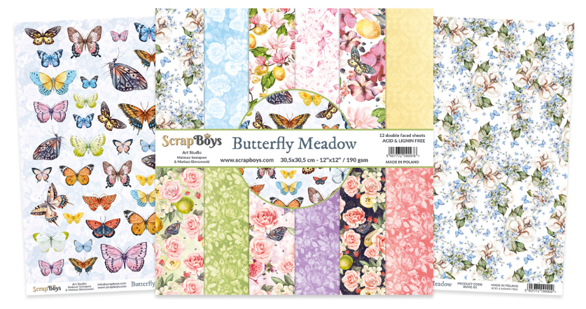 I used "Butterfly Meadow" paper collection from ScrapBoys