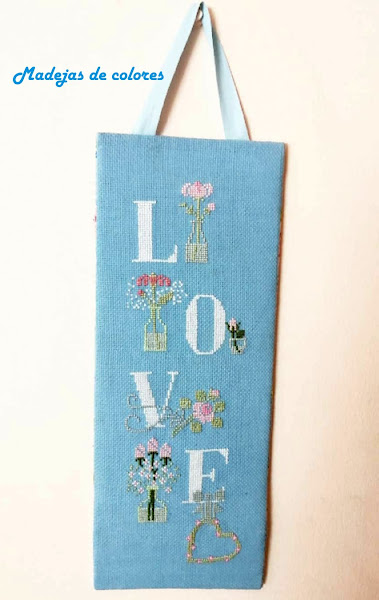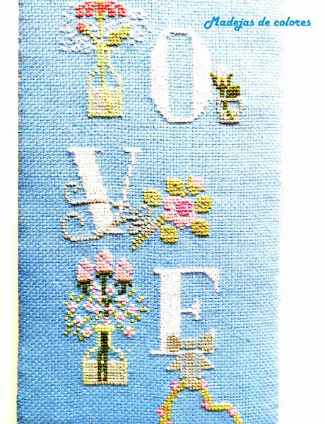 Veréis que cada letra va acompañada de jarrón con flores, todos diferentes y al final una corona en forma de corazón.
