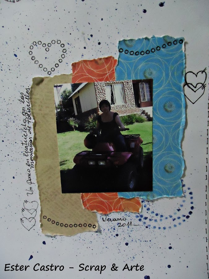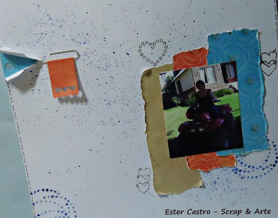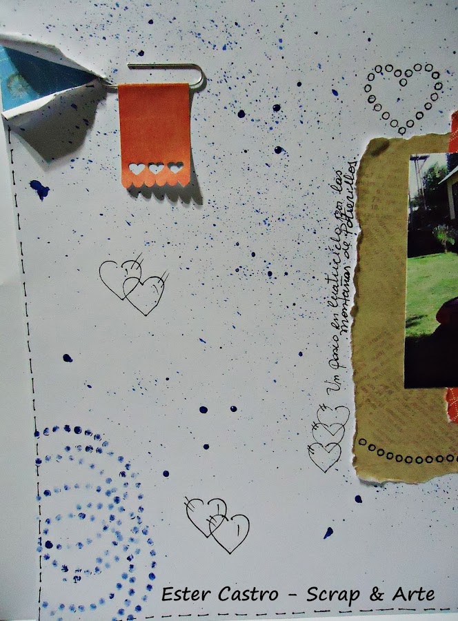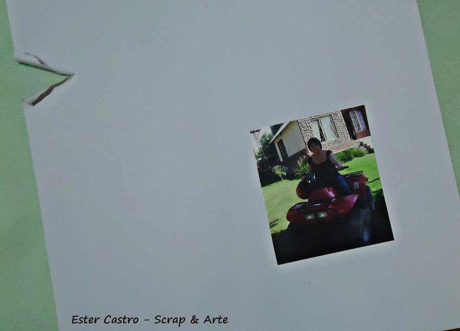 Después pegué la foto sobre al mat y un trocito de míni lámina por la parte de atrás del papel que abrí en el lateral para dar un contraste,