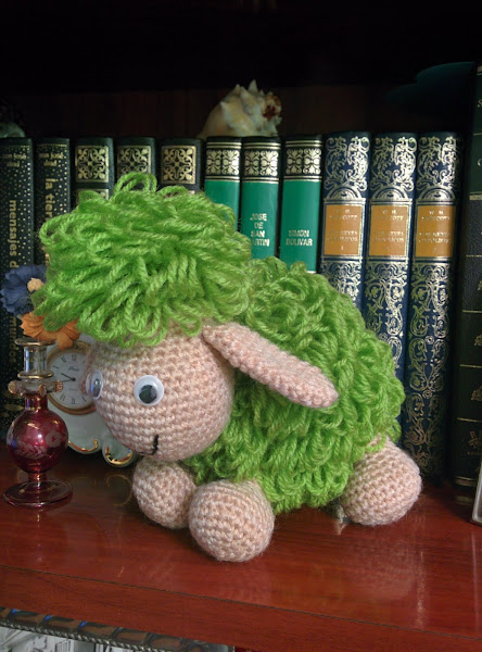 Mi querido amigo Pedro me pidió una oveja en el mes de agosto del año pasado pero como me caí por las escaleras y estuve averiada un montón de tiempo no pude hacérsela, así que el otro día me recordó que estaba pendiente su oveja y como la quería verde me vino al pelo para participar en este reto y hacerle su oveja.