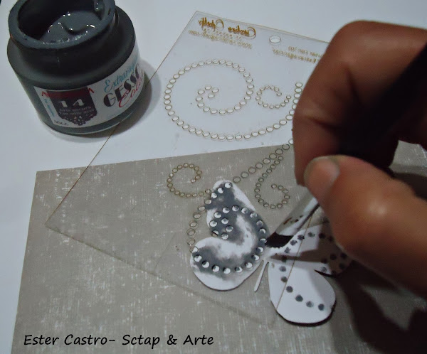y para terminar coloque detalles de Stras Plateados Autohadesivos en las mariposas y en el borde de algunos círculos,