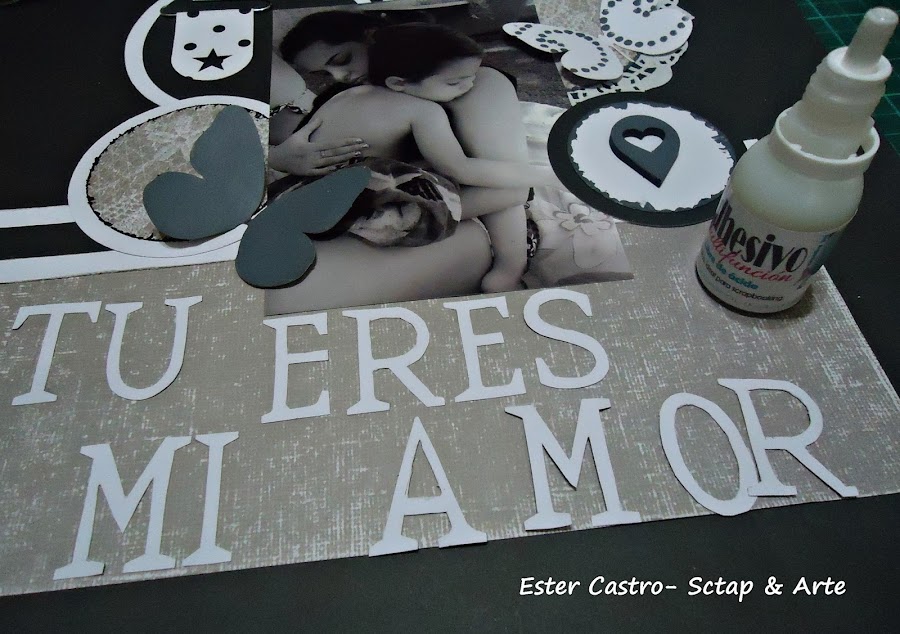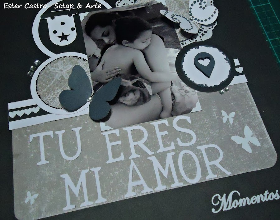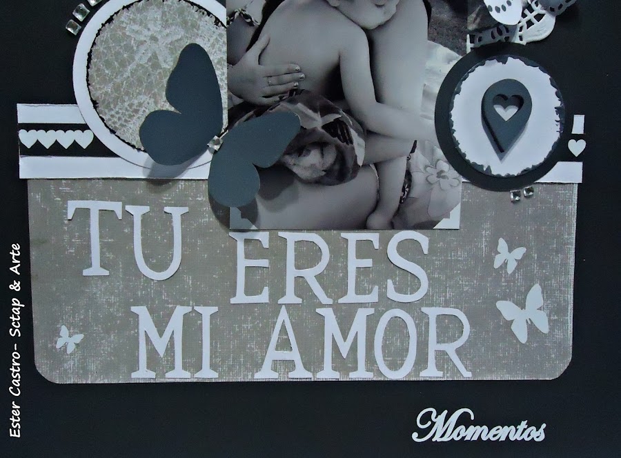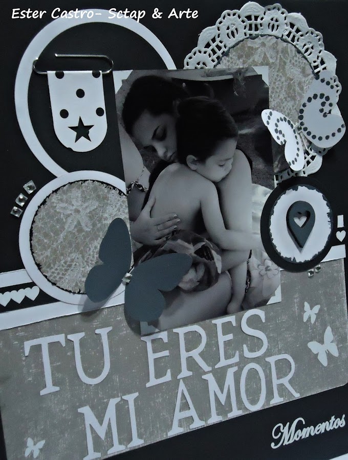 Este tutorial fue inspirado en una foto que revele en Blanco y Negro de mi hija y mi nieto que tome en las vacaciones con la cual realice el Layout en los colores Negro, Blanco y Grices.