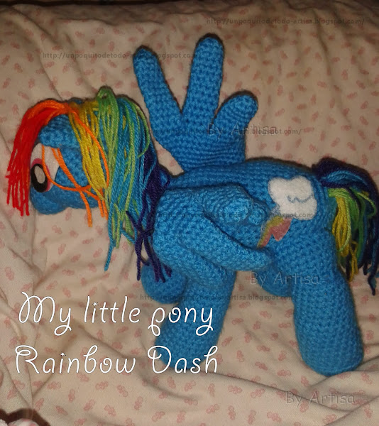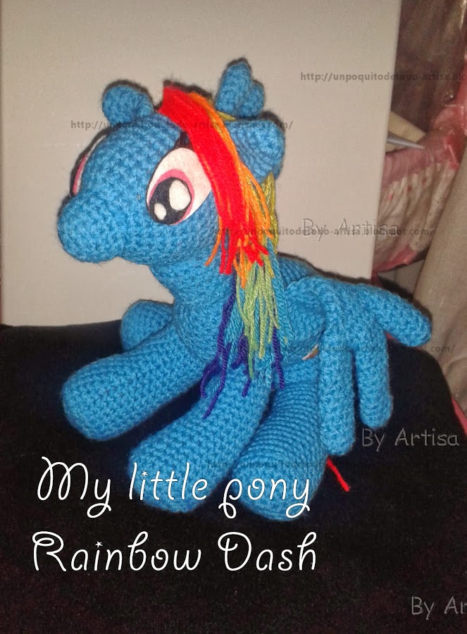 Hola, hace días que no subo nada de lo que estoy haciendo.... hoy os enseño un Little pony Rainbow Dash amigurumi que hice para que Papá Noel se lo trajera a Adriana estas navidades.