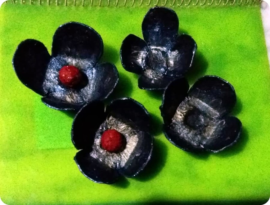 Mi intención era poner tres flores por cada rama , pero no me ha llegado el material , que no es otro que cajas de las hueveras.