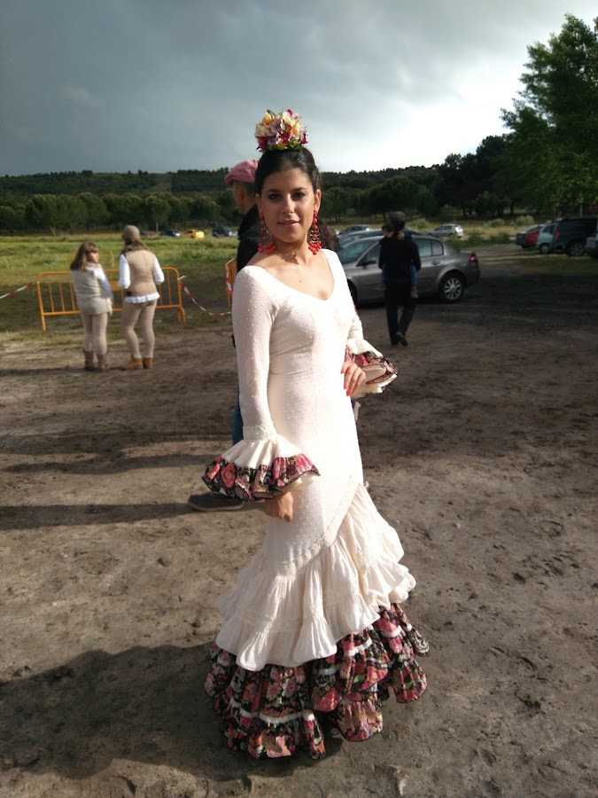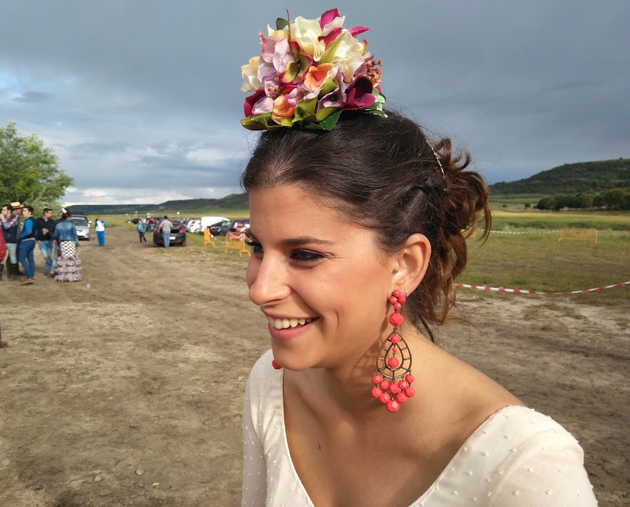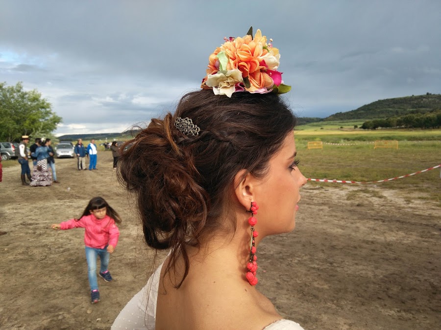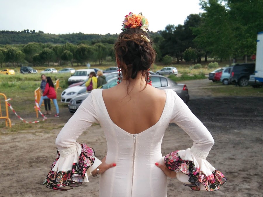 Hoy os enseño un bonito ramillete que le hice a Tamara para su traje de sevillana. Está hecho a juego con su traje, que es beige con tonos beige, naranjas, verdes y fucsias.
