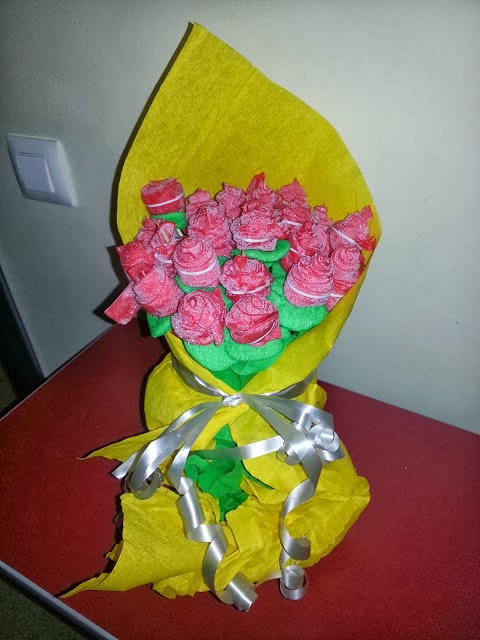 Hoy voy a mostraros un ramo de rosas que realicé con chuches. Sí si, totalmente de chucherías :D