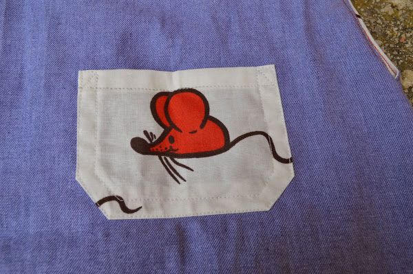 La tela es un tejano finito y suave que tenía por casa, al igual que la tela de ratoncitos.