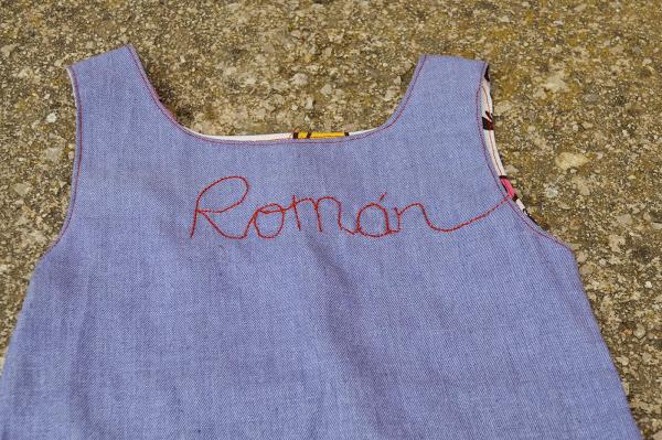 Costura del nombre del peque cosido a máquina, a lo loco, como a mi me gusta.