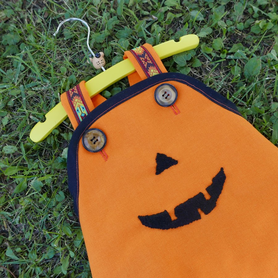 Así que he tomado un patrón de mi colección de Colours for Baby y utilizándolo como base, me he puesto a trabajar sobre ella. Y es que con una loneta naranja, para la confección de la ranita y sobre ella un bies negro para definir la forma redondeada, una tira decorativa para que los tirantes no pasen desapercibidos.